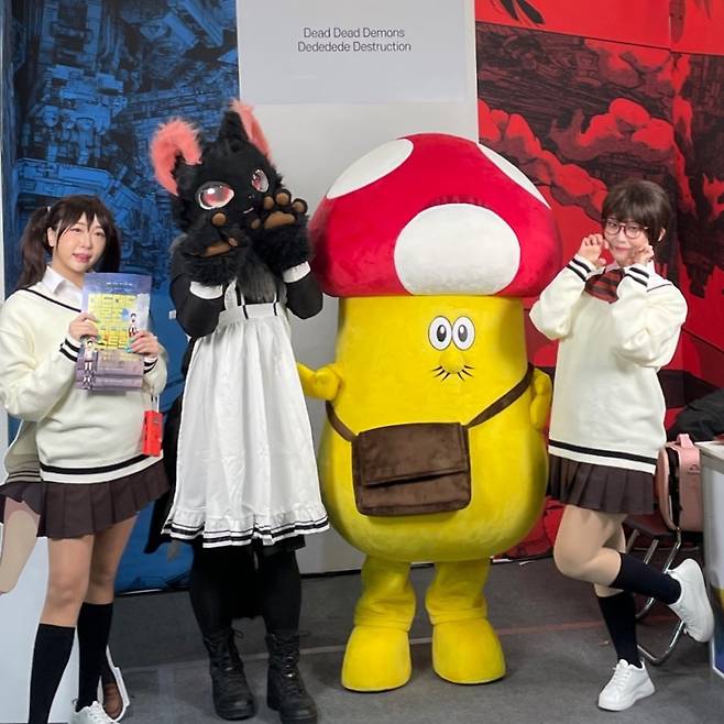 또한, 실제 ‘카도데’와 ‘오란’을 데려온 듯한 전문 코스어들이 함께하며 부스를 더욱 풍성하게 만들었다. 특히, 싱크로율 200%를 자랑하는 영화의 마스코트 ‘이소베양’ 탈인형은 방문객들의 폭발적인 관심을 이끌어 내며 영화에 대한 호기심을 한껏 자극했다. 여기에, 영화의 디스토피아 분위기를 담아낸 리플렛과 귀여운 ‘데데디디 스티커’ 증정 이벤트까지 진행되며 ‘AGF 2024’ 방문객들에게 특별한 시간을 선사했다. 참고로 기자도 사진을 찍고 스티커를 받았다.