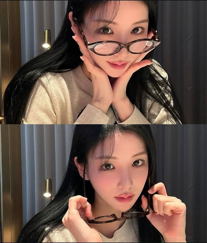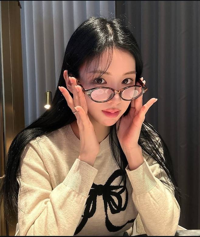 여기에 가볍게 걸친 안경이 더해지며 책 속에서 막 나온 듯한 ‘문학소녀’ 분위기를 완성했습니다.