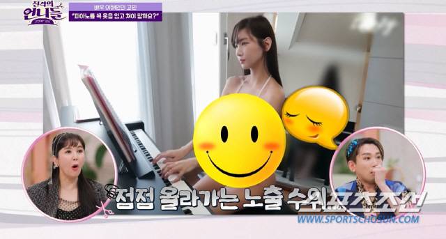 영상 속 이해인은 비키니를 입거나, 노출이 심한 속옷 등을 입은 상태로 피아노를 연주하고 있다.