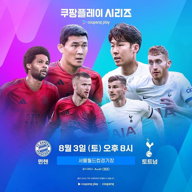 이번 쿠팡플레이 시리즈에서는 K리그 올스타 격인 '팀 K리그'와 토트넘이 다음 달 31일 오후 8시 서울월드컵경기장에서 맞붙고, 뮌헨과 토트넘이 8월 3일 오후 8시 같은 장소에서 경기를 펼칩니다.