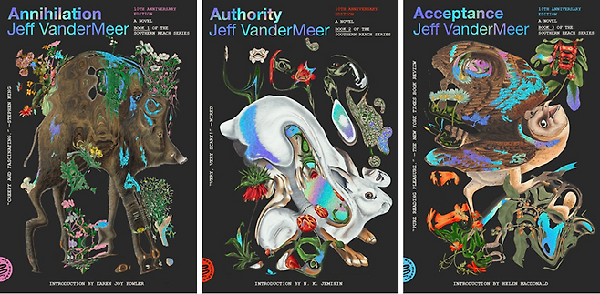 1위는 제프 밴더미어의 ‘서던 리치 3부작’. 10주년을 기념하여 북 디자이너 파블로 델칸이 새로운 책 표지를 제작했다. ‘서던 리치 3부작’은 출입이 금지된 불가사의한 땅 ‘X구역’에 대해 기괴하고 경이롭게 풀어낸 SF 환경 스릴러 소설로, 영화 ‘서던 리치: 소멸의 땅’으로도 각색됐다.