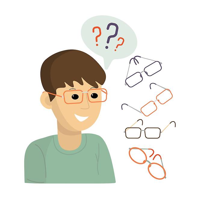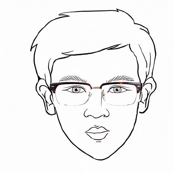 둥근 얼굴형이 사각 프레임 안경을 쓰면 얼굴에 각을 더해 샤프하고 세련된 이미지를 만들 수 있다. 다만, 얼굴 너비보다 작은 안경은 얼굴을 더 커 보이게 하므로 피하는 것이 좋다.