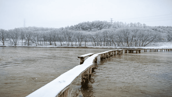 경상북도 영주의 무섬마을은 마치 시간이 멈춘 듯한 고즈넉한 분위기를 자랑하는데요. 마을의 세 면이 강으로 둘러싸여 있어, 외부와 살짝 단절된 듯한 정취가 매력적입니다. 겨울이 되면 하얗게 쌓인 눈과 얼어붙은 강, 그리고 그 위로 깔리는 밤의 정적이 더해지며 이곳은 진정한 겨울 감성 여행지로 변모합니다.