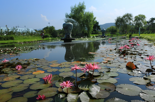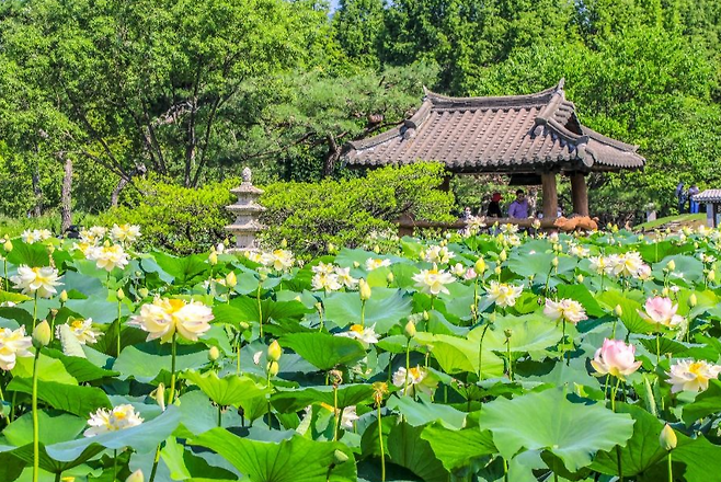연못과 산책로를 따라 걷다 보면연잎 사이로 비치는 햇살과 물방울,그리고 풍경처럼 피어난 연꽃들이 마음을 정화시켜 줍니다.