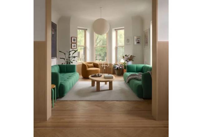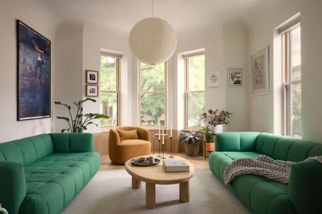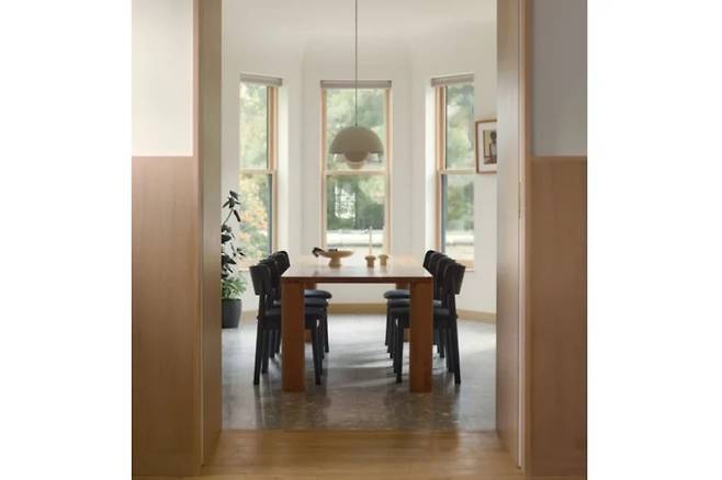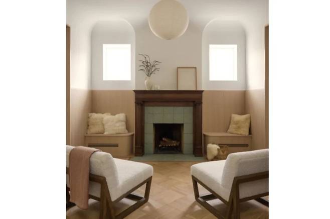 거실과 다이닝 공간 사이에는 수작업 타일로 새롭게 마감한 벽난로가 중심을 잡고, 양옆으로 냉난방 설비를 감춘 붙박이 의자가 놓여 아늑한 쉼터를 만든다. 40센티미터 깊이로 새롭게 설치된 몰딩과 패널의 부드러운 곡선이 서로 호응하며, 이전의 투박한 목재 마감은 디테일을 최소화한 가벼운 벽 패널로 대체됐다.