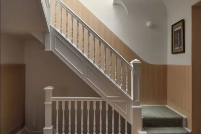 계단을 둘러싸고 있던 벽도 없애 지하 공간이 집 전체의 흐름 안으로 자연스럽게 통합됐다. 기존 계단의 장식 목재는 벽이 있던 자리에 그대로 복제하되 벽, 천장과 동일한 흰색으로 마감해 역사적인 요소와 현대적인 손길이 한 공간 안에 묘하게 공존한다.