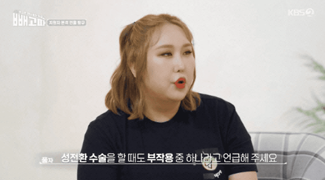 김신영은 "호르몬 균형이 깨지면 살이 찐다"고 짚었고 이에 풍자는 "(비만을) 성전환 수술할 때도 부작용 중에 하나라고 언급해준다 근데 그래도 안 찌시는 분도 많다 나는 정통으로 부작용을 맞은 케이스"라고 밝혔습니다.