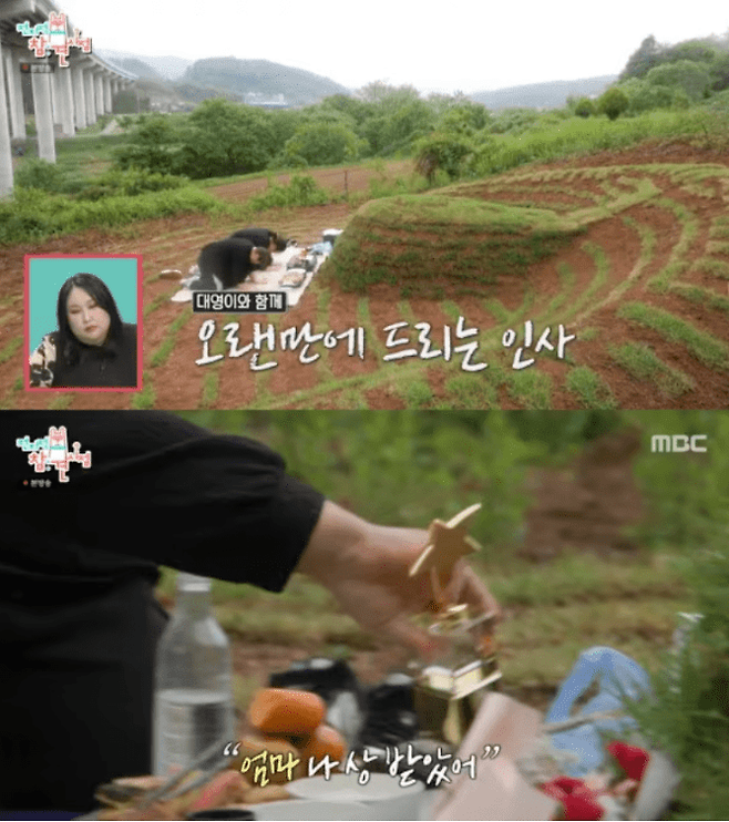 이후 모친의 산소에 도착한 풍자는 "나 어렸을 때 우리집이 잘 살았다. 근데 엄마가 사기를 당한 거다. 그거를 1년 동안 말을 안 한 거다. 아빠한테도 누구한테도. 죄책감에."라고 가족사를 털어놓았습니다.