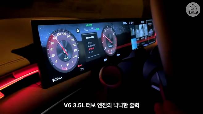 약간의 아쉬움은 확 달라진 실내가 달래줬습니다. 변화를 주도하는 건 27인치의 거대한 디스플레이로 통합된 계기판과 인포테인먼트 시스템이었는데요. 제네시스만의 전용 테마와 매끄럽게 이어지는 내비게이션으로 일체감이 뛰어났고, 그 외 딱히 특별한 기능은 없지만 생김새만으로 여전히 남다른 분위기를 만들어냈습니다. 고급차, 특히 프리미엄 브랜드에서는 이 남다른 분위기라는 게 정말 중요한 것 같고 어떤 화면을 띄우냐에 따라 투박하게 뚝뚝 잘리는 부분들이 있어서 좀 더 다듬어지면 좋겠지만요.
