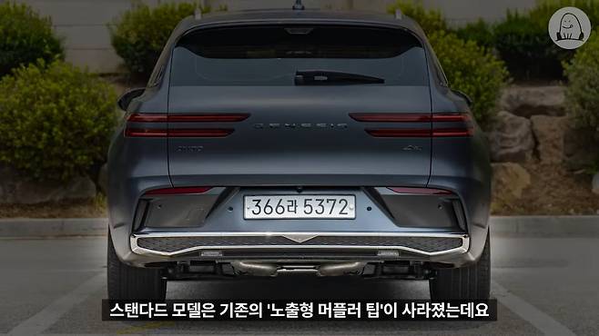 물론 개인적으로 아쉬운 부분도 있었습니다. 멀리서도 GV70임을 알 수 있게 해주는 디테일이었던 상단 보조제동등 디자인이 심플한 'ㅡ' 모양으로 변경된 것, 또 앞서 출시된 상위 라인업들과 마찬가지로 일반형 모델은 기존의 노출형 머플러 팁이 사라졌는데요. 오각형의 크롬 장식으로 심심하지 않게 마무리한 것은 좋았지만, 기존의 세로형 머플러 팁도 독특해서 마음에 들었는데, 이 GV70만의 개성 있는 포인트들이 사라지는 것이 아쉬웠습니다. 다행히 스포츠 패키지에는 기존의 원형 팁을 대구경 사각 머플러로 변경해 공격적인 분위기를 유지했습니다.