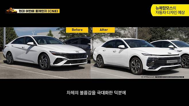 현대자동차가 준비하고 있는 8세대 아반떼 풀체인지 모델의 예상도가 뉴욕맘모스에 의해 공개됐다. 공개된 이미지를 통해 미래 세단 디자인의 새로운 기준을 제시하기 위해 혁신적인 디자인 철학과 기술적 진보를 담아낸 8세대 아반떼 예상도를 확인할 수 있었다.