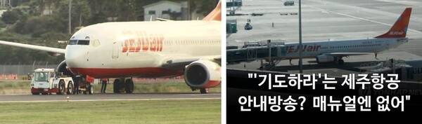 하지만 여기서 끝나지 않고, 해당 비행기는 무사히 청주에 착륙하였지만 점검을 받지 않은 채 바로 제주도로 이륙을 하는 만행을 저질렀습니다. 제주로 향하던 비행기에서도 경고등이 그대로 켜져 있어 승무원이 문을 잡은 채 비행을 했어야 했습니다. 그제야 문 손잡이에 테이프 칠을 하는 모습을 보였습니다.