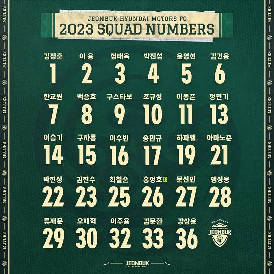 [마이데일리 = 이현호 기자] 전북 현대가 2023시즌 선수단 등번호를 공개했다.