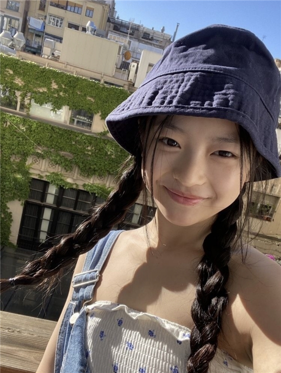 땋은 머리와 벙거지 모자를 코디해 러블리한 룩을 보여줬요.