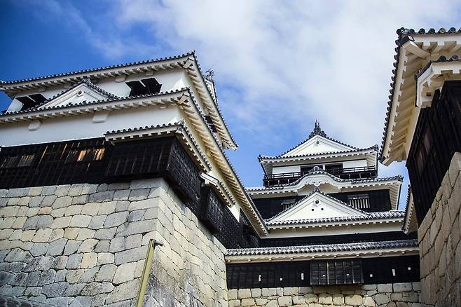 영화나 애니메이션 속에 나오는 닌자들이 지키고 있는 성처럼 느껴지기도 합니다. 성은 시내 중심에 위치해 있어 천수각에서 평야와 세토내해를 포함해 마쓰야마의 시내 전경을 조망할 수 있습니다.