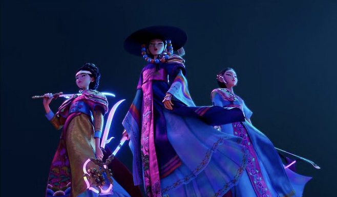 K팝과 퇴마의 결합은 어떻게 나왔을까. 강 감독은 “사실 처음부터 K팝을 넣으려던 건 아니었다. 저승사자, 도깨비 같은 한국적 이미지를 스토리에 담고 싶었고, 거기서 무속신앙을 떠올렸다. 굿은 음악과 춤으로 악귀를 물리치는 의식이다. 사실상 최초의 콘서트라고 할 수 있다. 무대에서 악귀와 싸우고 관객과 호흡한다는 점이 공연과 닮아 있더라. 그래서 K팝과 연결하면 재미있겠다고 생각했다”