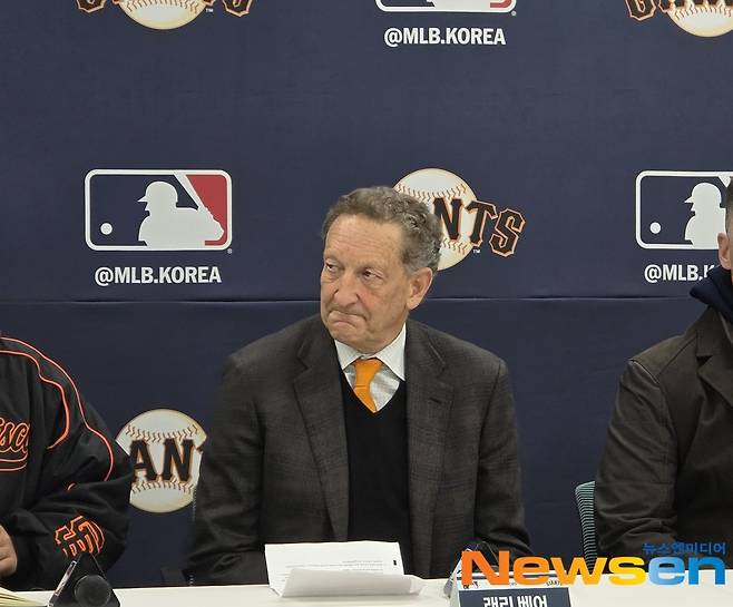 이정후에 대한 애정도 나타냈다. 베어 CEO는 "이정후를 통해 한국을 방문하게 됐는데 '바람의 손자'와 함께해 행복하다. 이정후가 본인의 나라에 우리를 초대한 호스트인데 그 역할을 잘하고 있는 것이 자랑스럽다"며 "팀에서 많은 일을 할 수 있는 선수다. 아버지인 이종범이 '바람의 아들'로 불리는 한국 야구 레전드라는 것도 안다. 한국에서 함께 시간을 보낼 수 있어 감사하다"고 말했다.