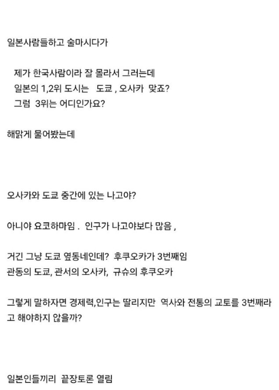 일본과 한국의 3위 도시는 어디?