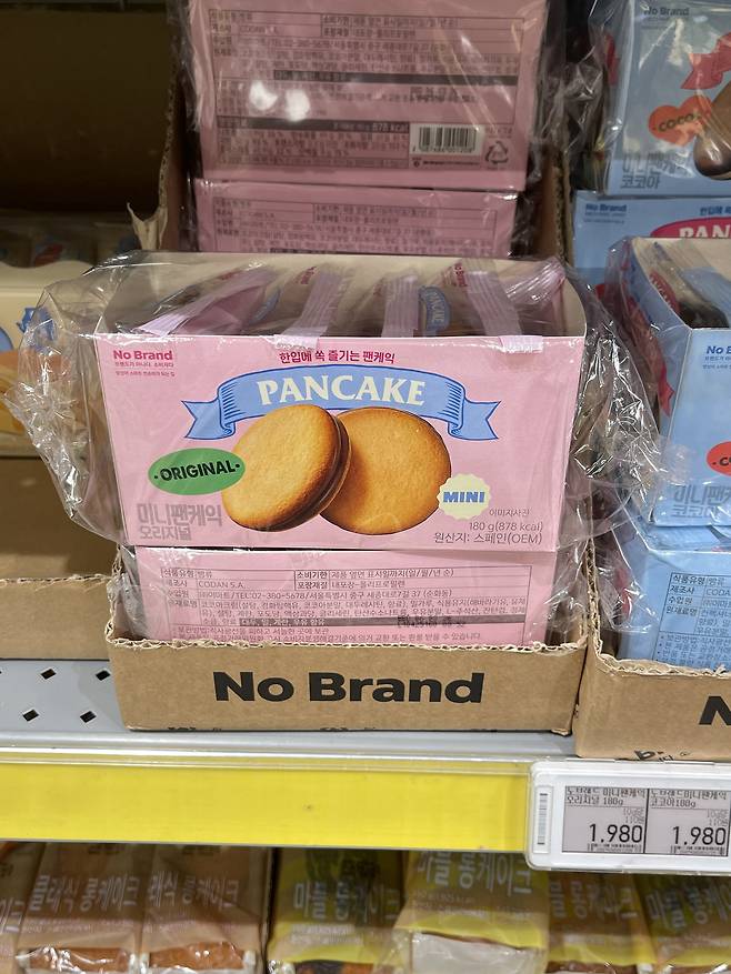 노브랜드 미니팬케익 오리지널: 부드러운 미니 팬케이크 안에 밀크 초콜릿이 스며든 달콤한 간식으로, 커피 한 잔과 어울리는 간편한 식감이 특징이에요.