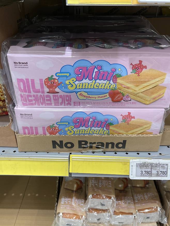 노브랜드 미니샌드케이크 딸기맛은 400 g 대용량 패키지로, 한입 크기의 부드러운 케이크 안에 딸기 크림이 샌드돼 있어 간식이나 디저트로 간편하게 즐기기 좋아요.