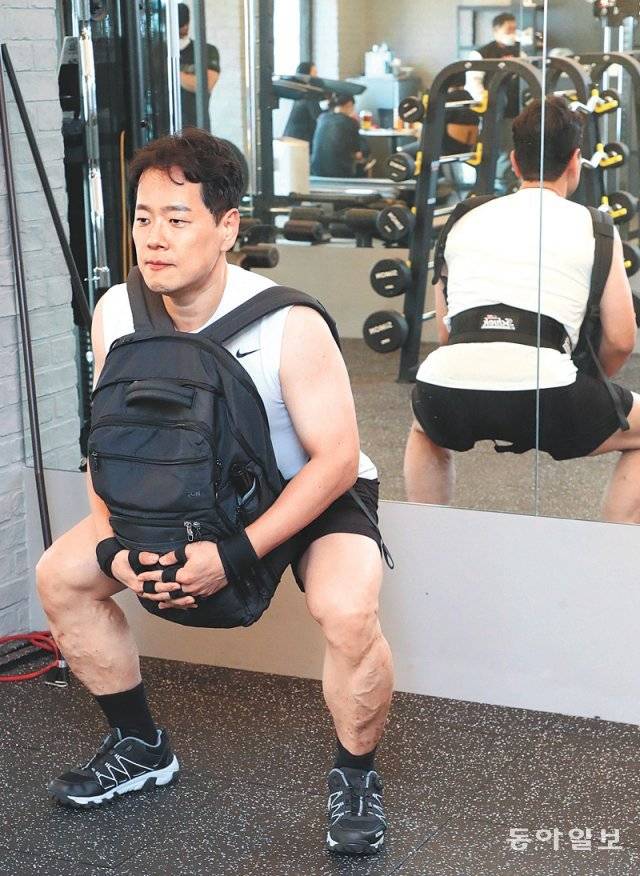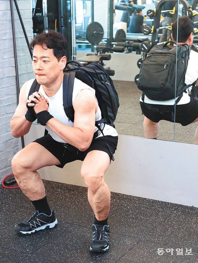 헬스클럽에 가지 않고 스쾃만으로 집에서 근육을 키울 수 있다. 임진홍 교수의 헬스 트레이너 강의찬 씨는 “배낭(백팩)을 활용해 원하는 부위의 근육을 키울 수 있다”고 말했다. 강 씨의 도움을 받아 임 교수가 직접 스쾃을 해봤다.
