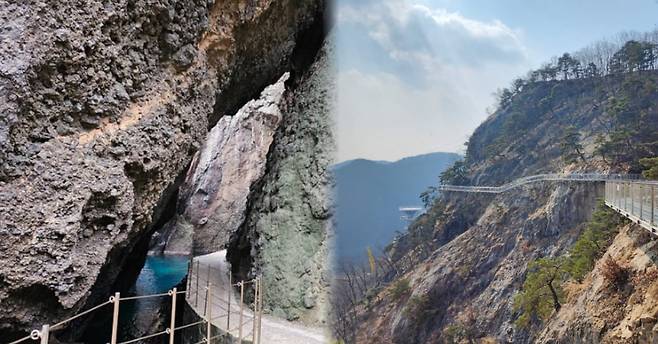 우리나라에는 바위산이나 주상절리 등 아찔한만큼 아름다운 자연풍경을 볼 수 있는 곳에 조성된 '잔도길'이 다수 있습니다. 위험천만해 보이지만 몇년간 관광객들이 안전하게 거닐어 왔습니다.