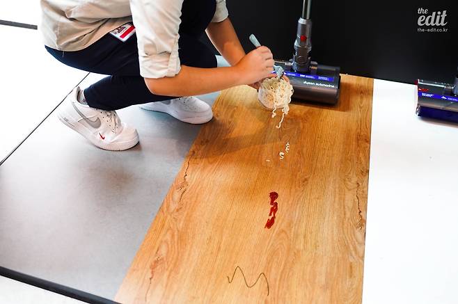 한편으로는 물걸레 청소기가 걱정되는 부분도 있습니다. 걸레를 깨끗이 빨지 못하고, 오히려 더러운 물을 끌고 다니면서 냄새가 날 수도 있기 때문입니다. 아사프 우이 무선 청소기 디자인 매니저도 이 부분을 오래 고민했고, 청소하면서 지속적으로 브러시를 짜내고, 청소가 끝난 뒤에도 쉽게 세척할 수 있도록 하는 설계를 만들어 냈다고 하니까 기대해 보도록 해요.
