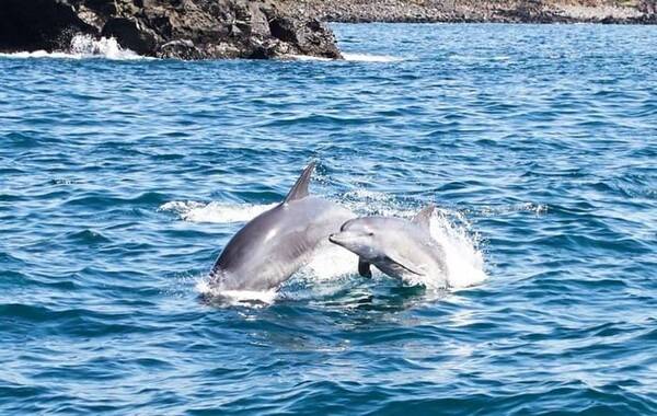 평평한 갯바위 위에 올라 잠시의 시간을 기다리면 이내 돌고래떼가 나타나곤 하는데요. 육안으로 생생하게 관찰될 정도로 가까이에서 헤엄치는 돌고래떼의 모습은 황홀함 그 자체라고 합니다. 아직 일반에 많이 알려지지 않아 낚시를 즐기던 낚시꾼들 사이에서만 알려져있는 제주 돌고래 스팟이죠.