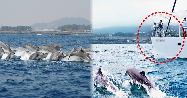 보다 가까이에서 돌고래 떼를 관찰하기 위해 유료로 제주 돌고래 투어를 이용하는 분들도 많습니다. 그러나 돌고래 투어에 사용되는 선박관광은 야생 돌고레 떼에게는 치명적인 피해를 줄 수 있는데요.