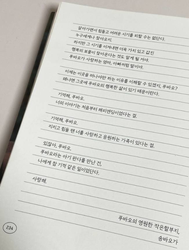 그러면서 "기억해 후바오. 너의 이야기는 처음부터 해피엔딩이었다는 걸. 푸바오라는 아기 판다를 만난 건, 나에게 참 기적같은 일이었단다. 사랑해"라고 편지를 적었습니다.