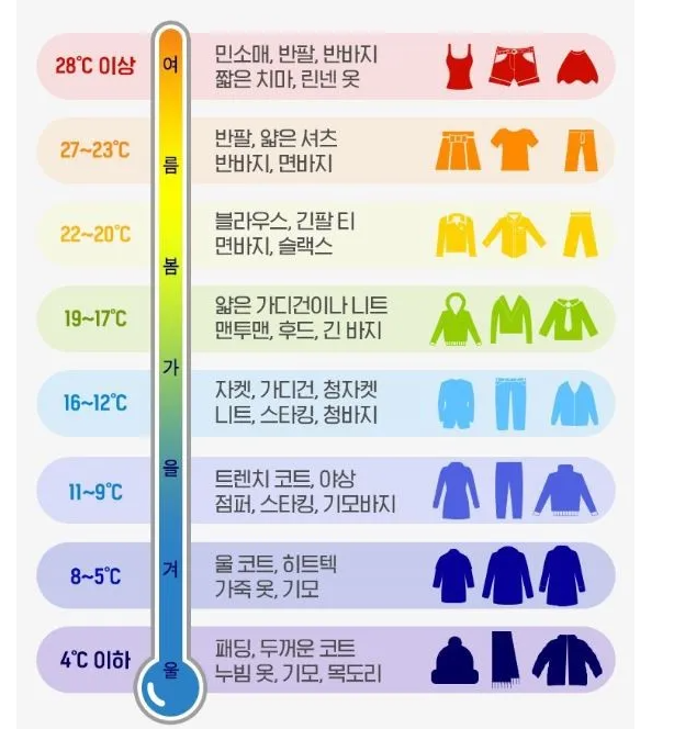 매일 어떤 복장을 선택해야 하나 고민이잖아요 온도별 기온별 옷차림 정리를 해보겠습니다
