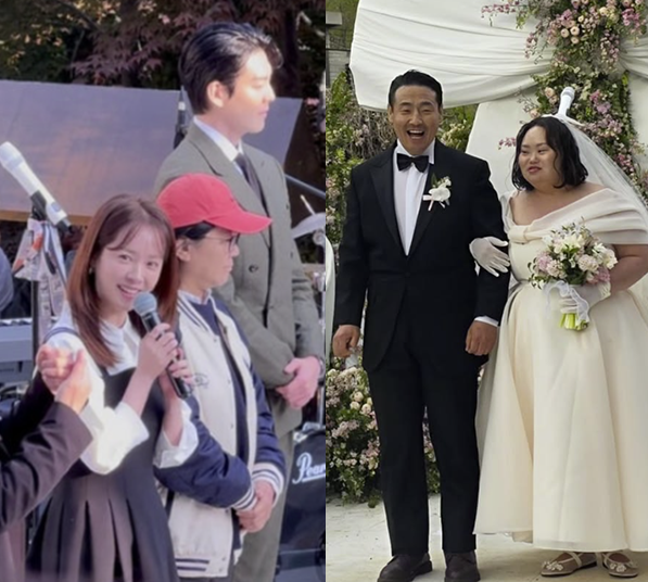 한지민 하객룩은 블랙 원피스에 화이트 셔츠로,