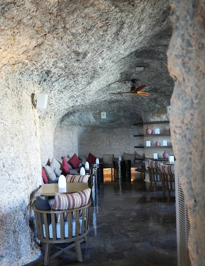 부히 바에는 바 카운터와 테이블 공간 외에도 비밀스러운 동굴 좌석이 3개 있다. 바다와 수영장을 바라보며 커플끼리 꽁알꽁알 이야기하며 오붓한 시간을 보내기에 제격이다. 부히 바에서는 오후 5시부터 7시까지 모든 음료를 1+1로 판매하니 놓치지 말기를.