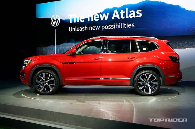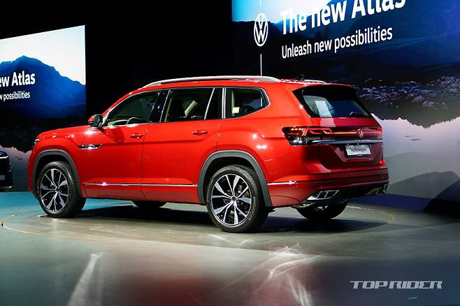 신형 아틀라스는 폭스바겐그룹의 MQB 모듈러 플랫폼을 기반으로 제작된 가장 큰 폭스바겐 모델이다. 차체 크기는 전장 5095mm, 전폭 1990mm, 전고 1780mm, 휠베이스 2980mm다. 국내에 선보인 전 라인업은 스포티한 R-Line 디자인 패키지가 기본으로, 고급스러우면서 역동적이다.
