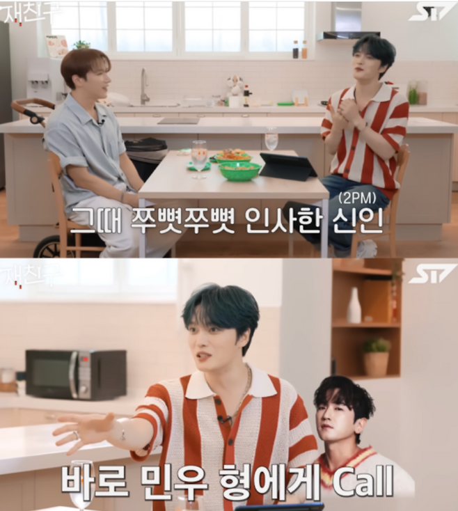 전 동방신기 현 JJ로 활동 중인 가수 김재중 님이 한 유튜브에서, 신인이었던 2PM이 인사를 제대로 안 해서 섭섭했다는 일화를 공개했죠. 이날 선배인 민우 님한테 일러바쳤다며 이야기를 전했는데요~! 그 후 2PM 준케이 님이 인사를 잘하고 다녔다고 말했죠.ㅋㅋ