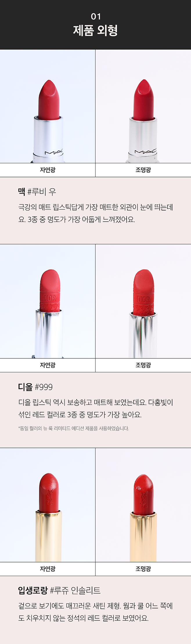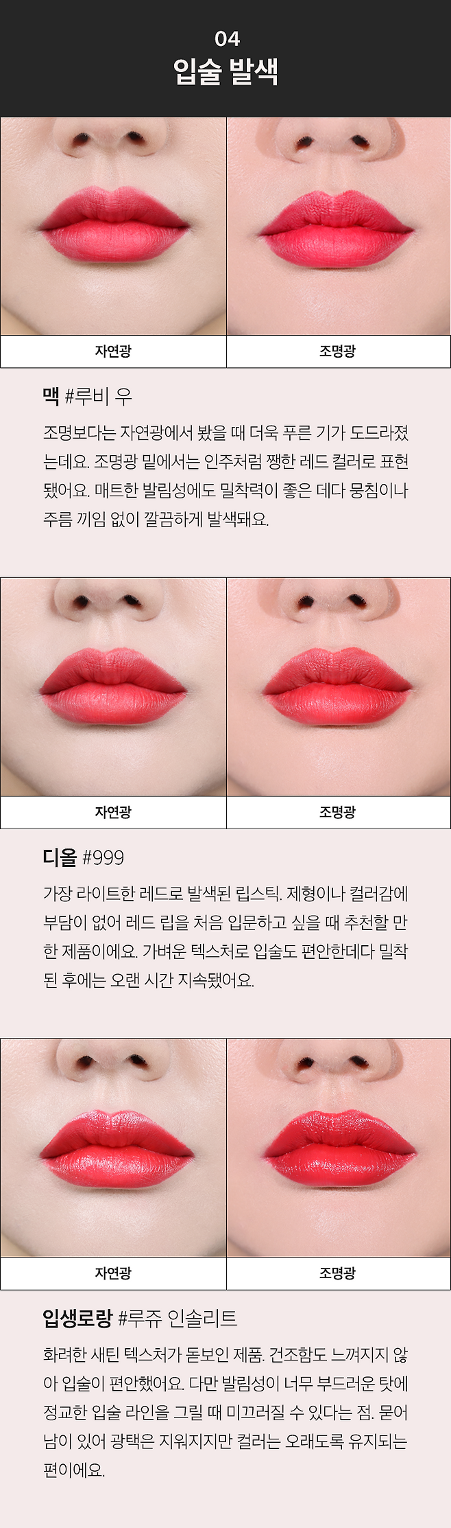 레드 립 마니아라면 고민해 봤을 백화점템,어떤 제품이 어울릴지 고민이었다면?레드 립의 정석이라 불리는백화점 립스틱 3종을 직접 발색 비교해 봤어요.