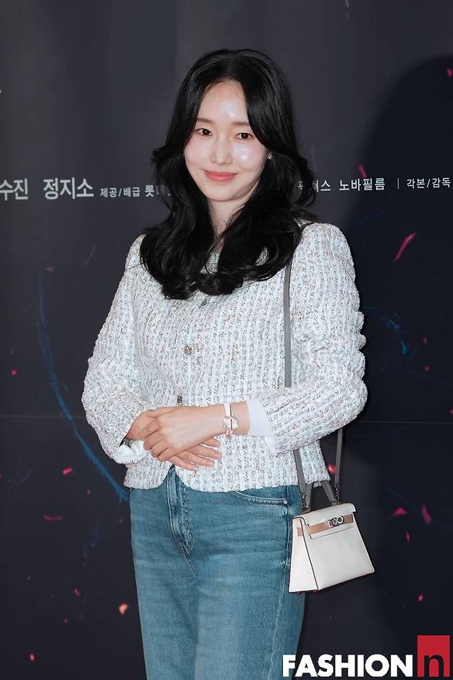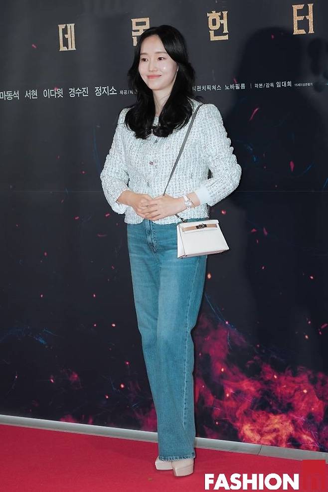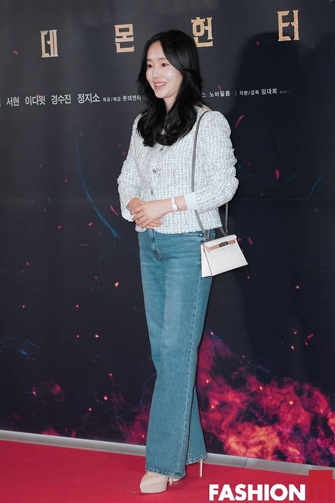 이날 이정현은 트위드 크롭 재킷과 데님 팬츠를 매치한 스타일리시한 트위드룩으로 나이를 초월한 동안 미모를 빛냈다.