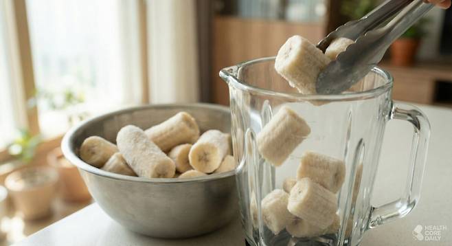 냉동 바나나는 단맛이 진해진다. 껍질을 벗긴 뒤 통째로 얼리거나 조각내어 보관하면, 믹서에 바로 넣어 아이스크림처럼 갈아 먹기 좋다. 설탕 없이도 달콤한 간식을 찾는 사람들에게 잘 맞는다.