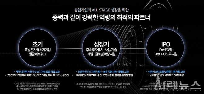 스타트업의 각 성장 단계별로 필요한 지원을, 투자부터 사업화, 글로벌 성장, IPO등 자본적 성장까지 맞춤형으로 전문성 있게 제공하고 함께 세부 산업을 “더 나은 내일”로 이끌어 갈 수 있기를 바랍니다.