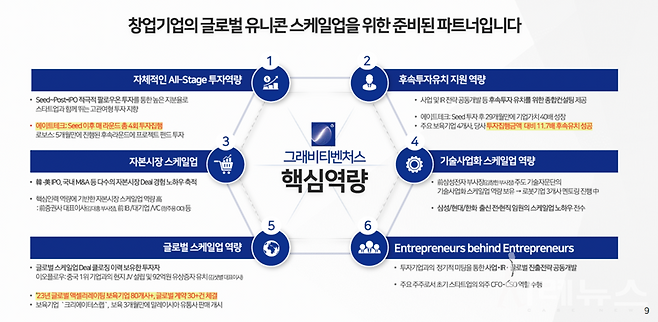 자체적인 All-Stage 투자역량, 후속투자유치 지원 역량, 자본시장 스케일업 지원 역량, 기술사업화 스케일업 역량, 글로벌 스케일업 역량 등 모두 그래비티 팀이 지난 3년여간 국내외 피투자기업들과 함께 성장하면서 내재화한 기능들이며, 앞으로도 스타트업들과 함께 성장하면서 더 많은 전문적 기능들을 갖출 수 있게 되기를 기대하고 있습니다.
