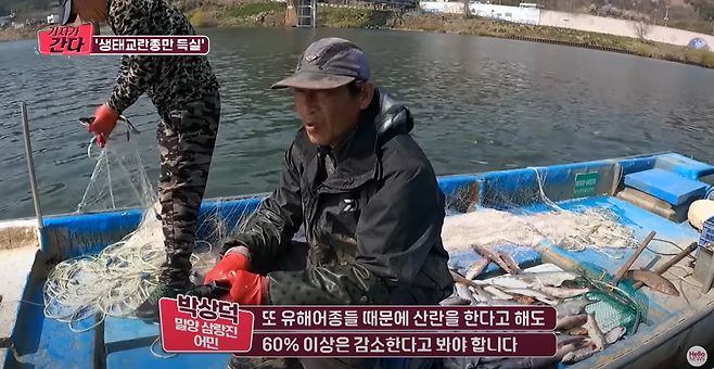 난폭한 포식자들이 점령한 물 반 고기 반 어장을 보는 어민들의