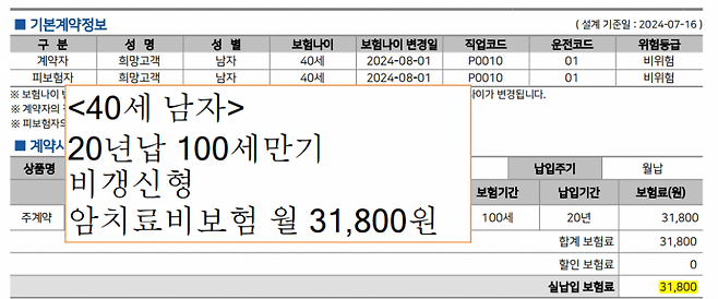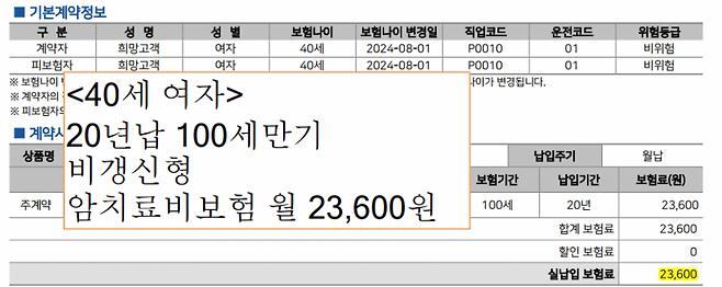 보험료는 40세 남여 기준으로 2~3만원초반대 입니다.