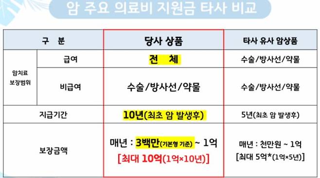 암진단 후 10년동안 10억을 보장