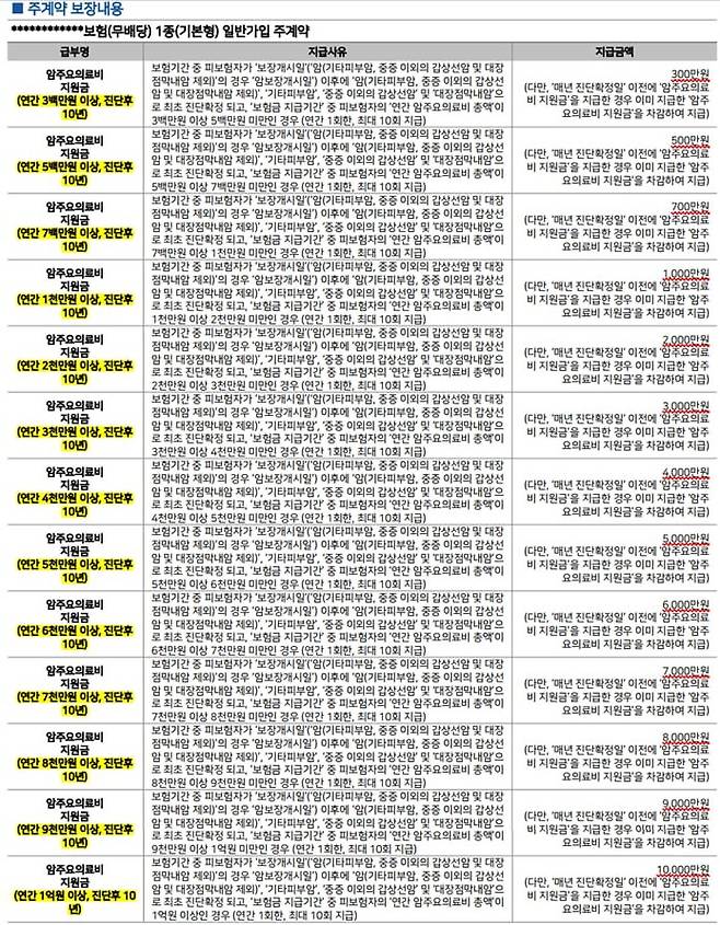 보험회사 상품별,성별,직업에 따라 가입가능한 담보와 가입금액,보험료 등은 달라질 수 있음