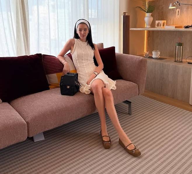 아이린은 24일 자신의 인스타그램에 화이트 클로케 원피스룩으로 포즈를 취한 사진 여러장을 게재했다.