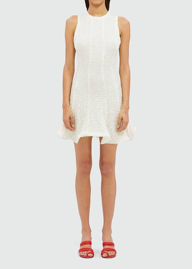 이탈리아 럭셔리 브랜드 MSGM' 자연스러운 주름이 돋보이는 유니크한 크로케 민소매 원피스룩
