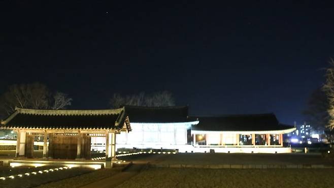 낮의 금성관이 단정하고 우아하다면, 조명이 켜진 밤의 금성관은 화려하면서도 로맨틱한 분위기로 변신합니다.