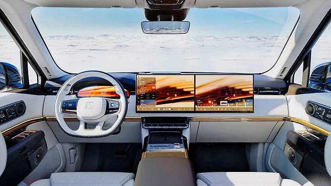 실내는 16인치 듀얼 디스플레이와 47인치 AR 헤드업 디스플레이, 2열 전용 17인치 천장 모니터 등 총 80인치 이상의 스크린 구성이 압권이다.