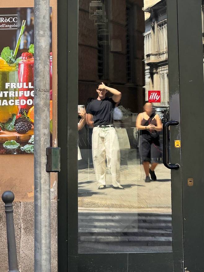 무심하게 이마 위로 손을 올린 포즈마저도 화보처럼 느껴지는 순간. 빛나는 조각 비주얼과 남다른 분위기는 멀리서도 ‘연예인 포스’가 뚝뚝 흐른다.