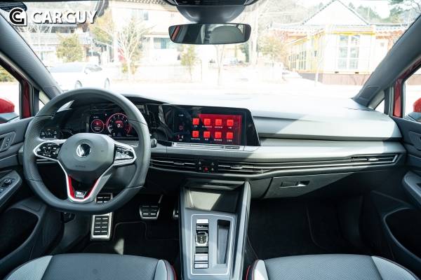 10.25 인치 디지털 계기반은 운전자 보조 시스템과 주행 속도, 연료 게이지 등 기본 정보와 함께 GTI 전용 그래픽을 구현했다. 스포츠 주행에 필요한 차량의 순간 출력, 엔진의 부스트 압력 등의 성능 정보와 랩 타이머를 제공한다.